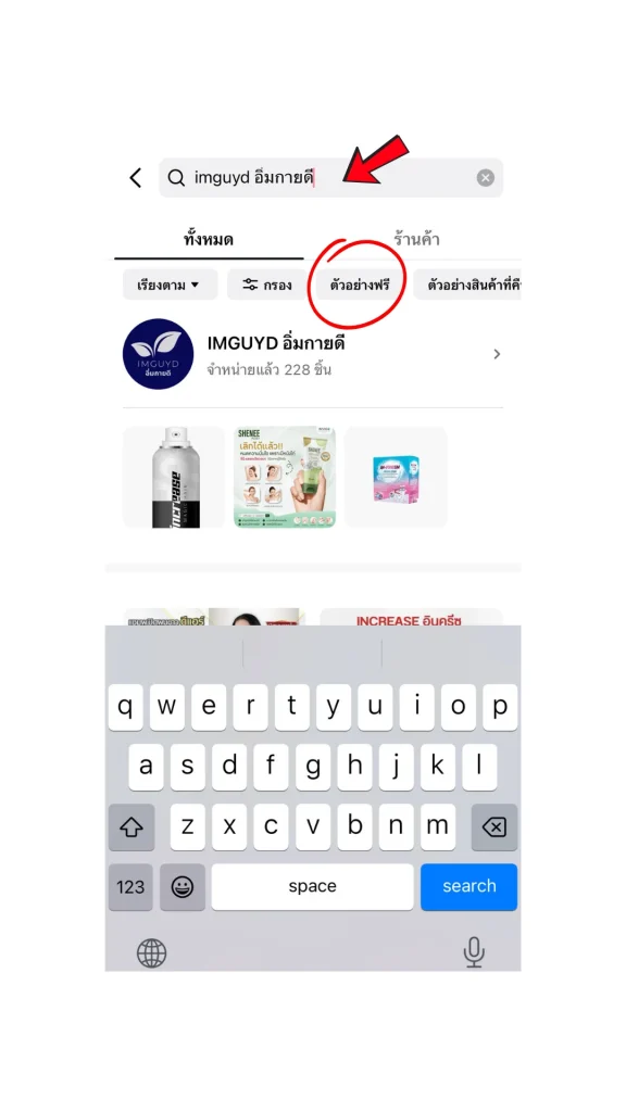 ขั้นตอนที่ 5 พิมพ์ค้นหาร้าน imguyd อิ่มกายดี